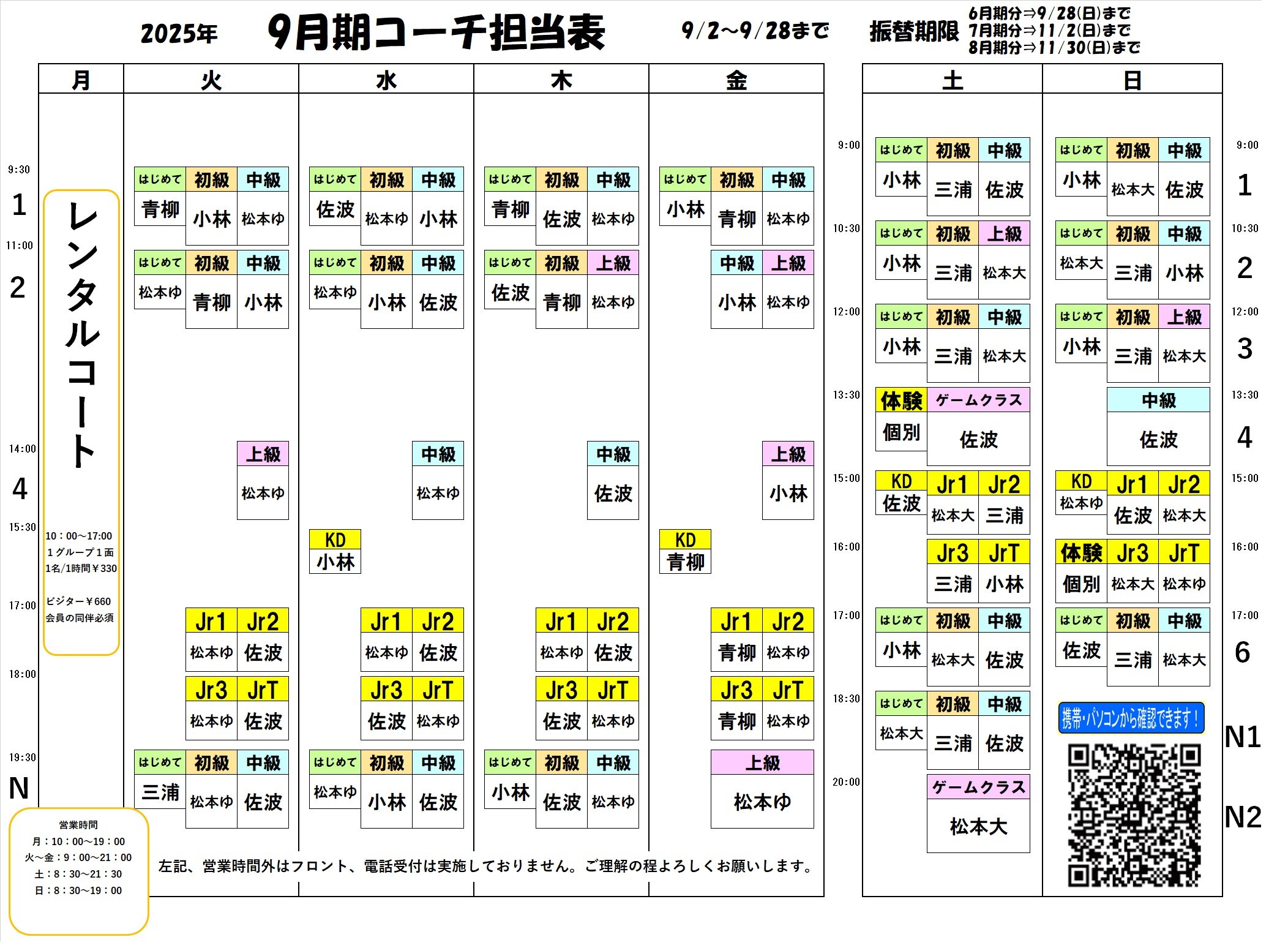 9月期 コーチ担当表のご案内
