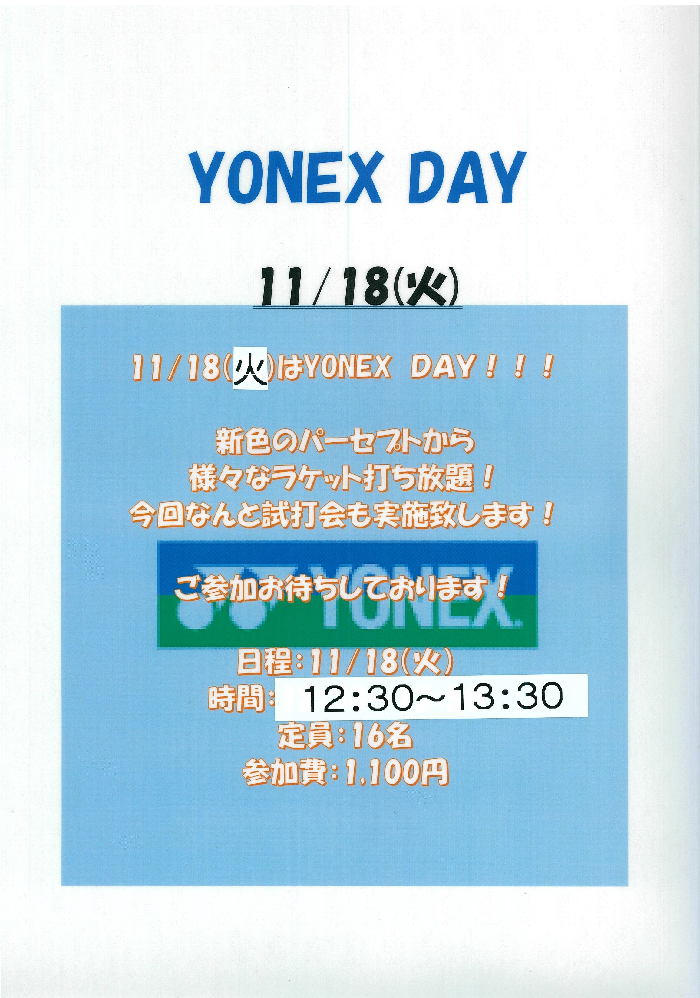 11月イベント ヨネックスデー試打会のお知らせ 11/18(火)12:30~13:30