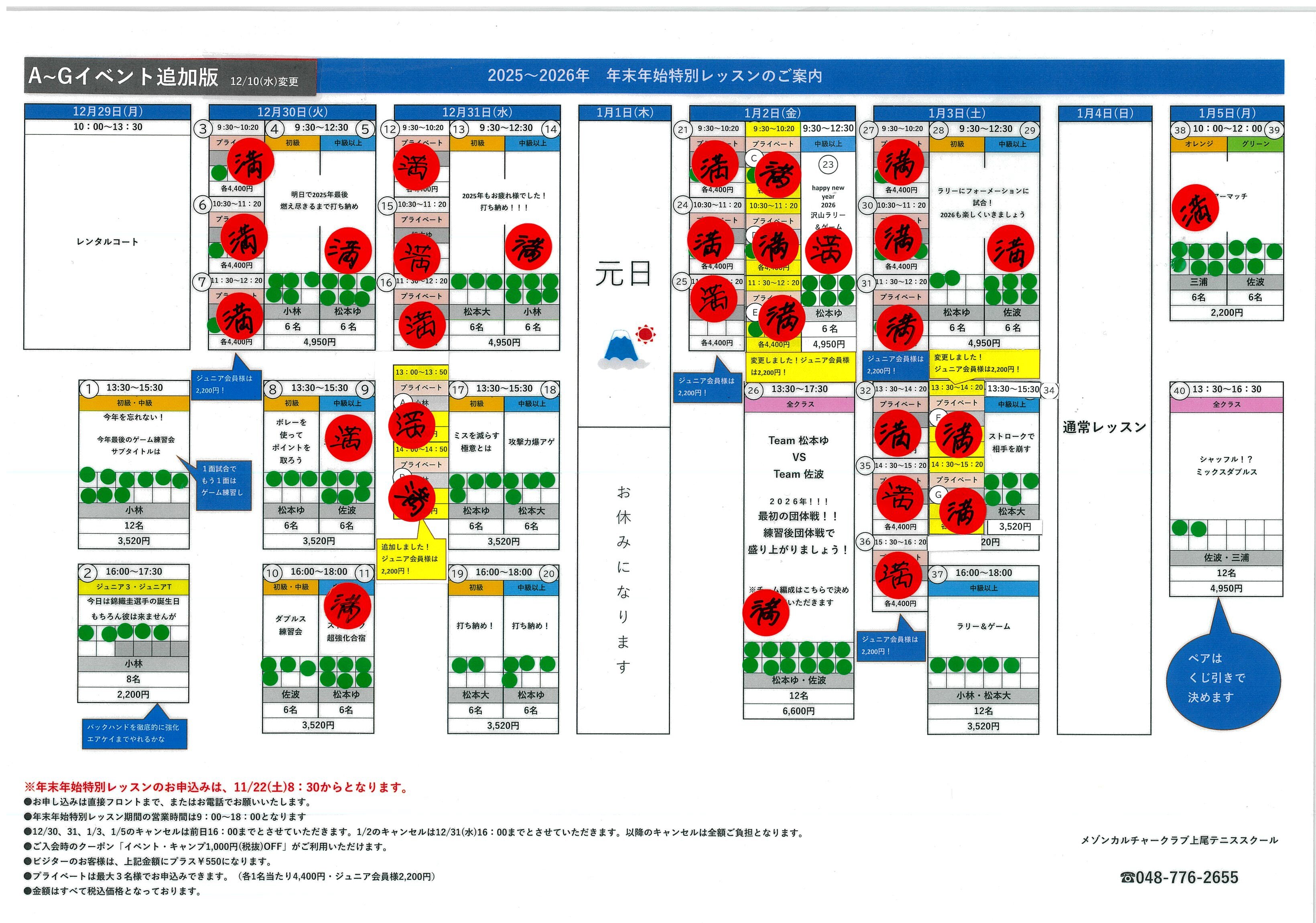 2025年 年末年始特別レッスン追加版途中経過(2025年12月22日更新)