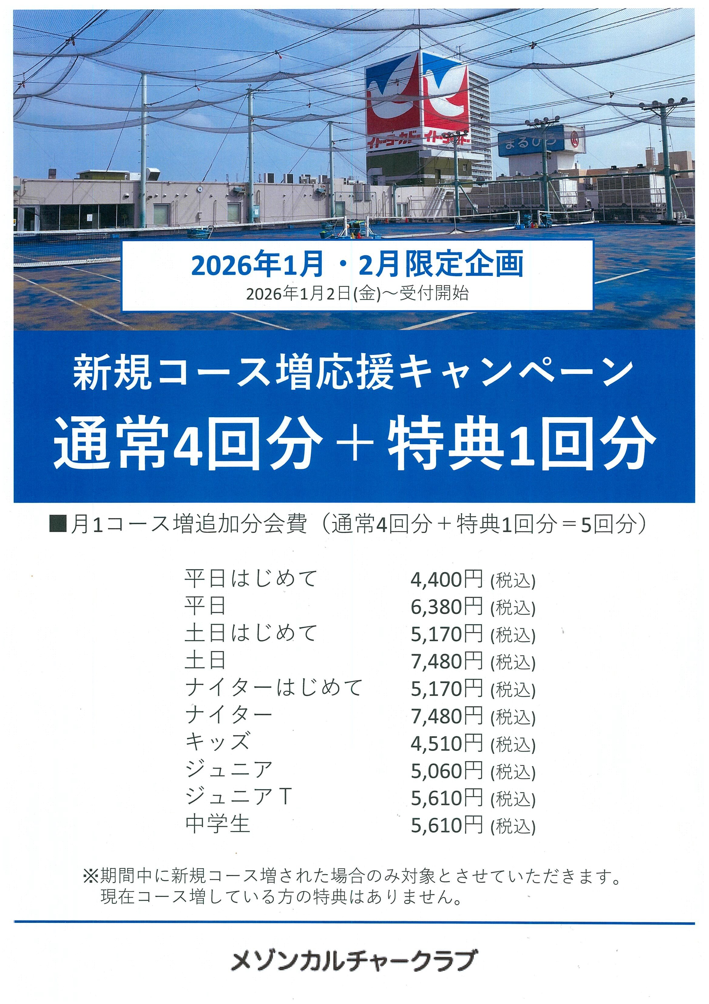 2026年1月・2月限定企画 新規コース増応援キャンペーンのお知らせ