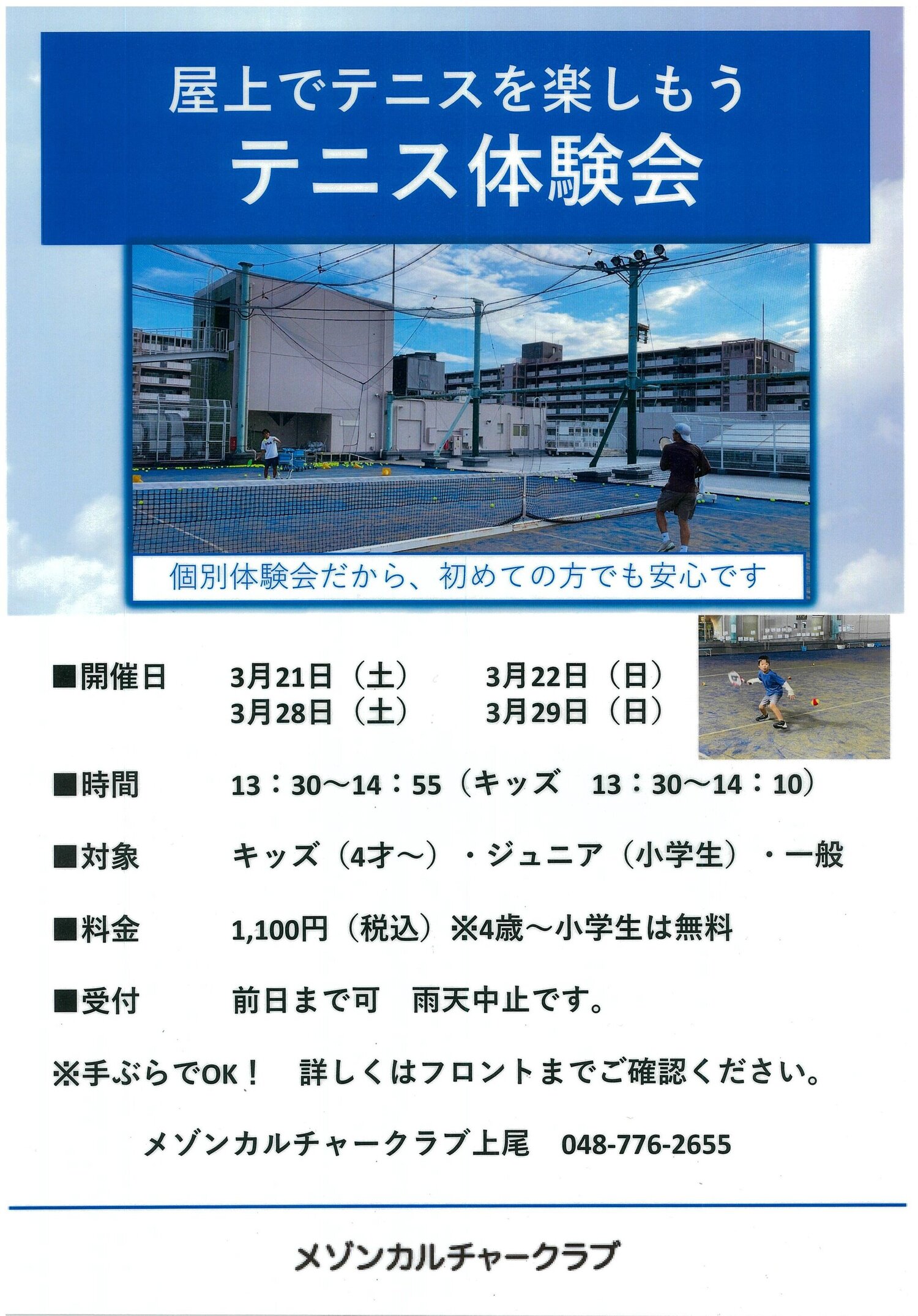 テニス2月イベント MCC CUP ビギナーズダブルス大会のお知らせ (上尾大会)2/23(月・祝)13:00~16:00