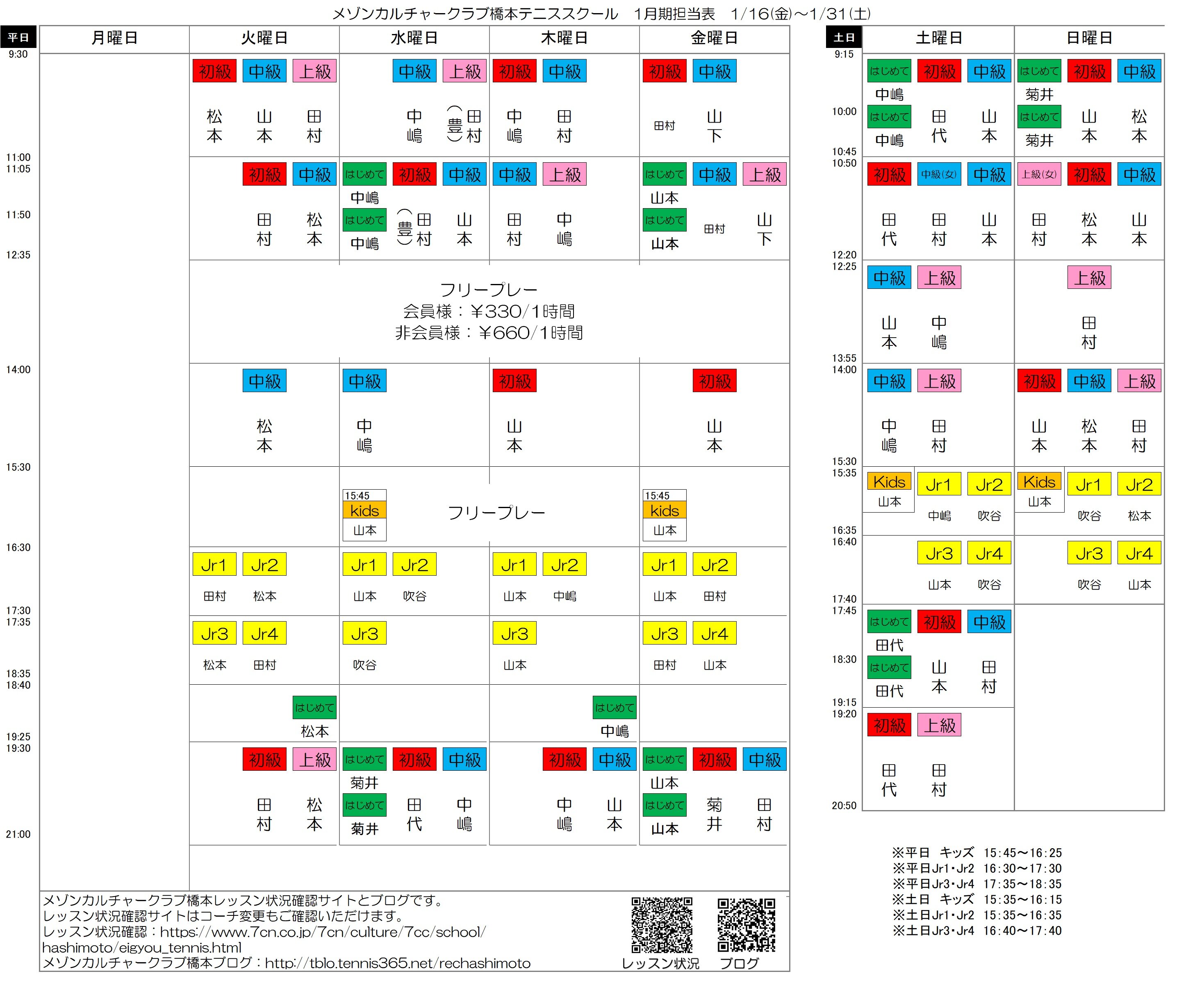 1月(前半・後半)コーチ担当表のご案内