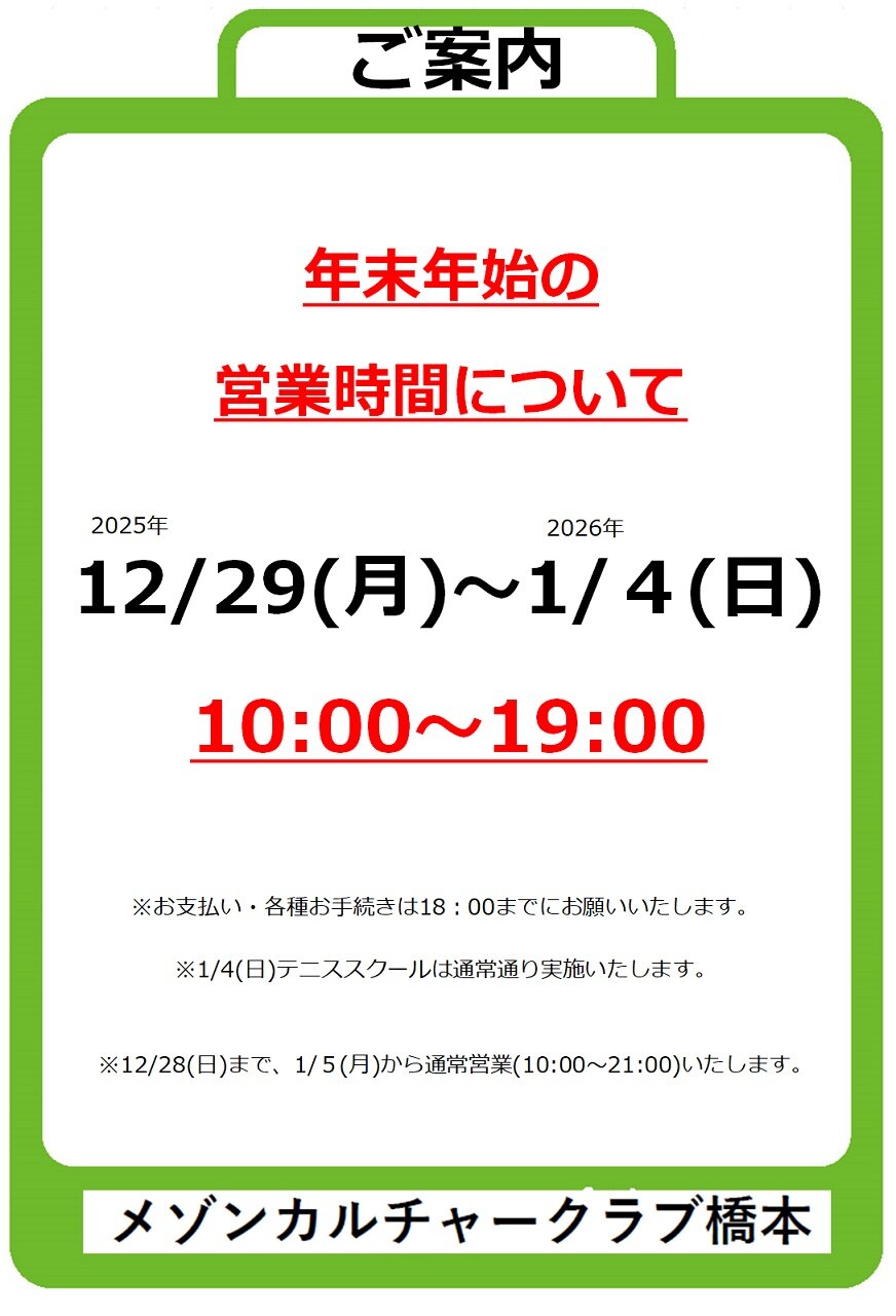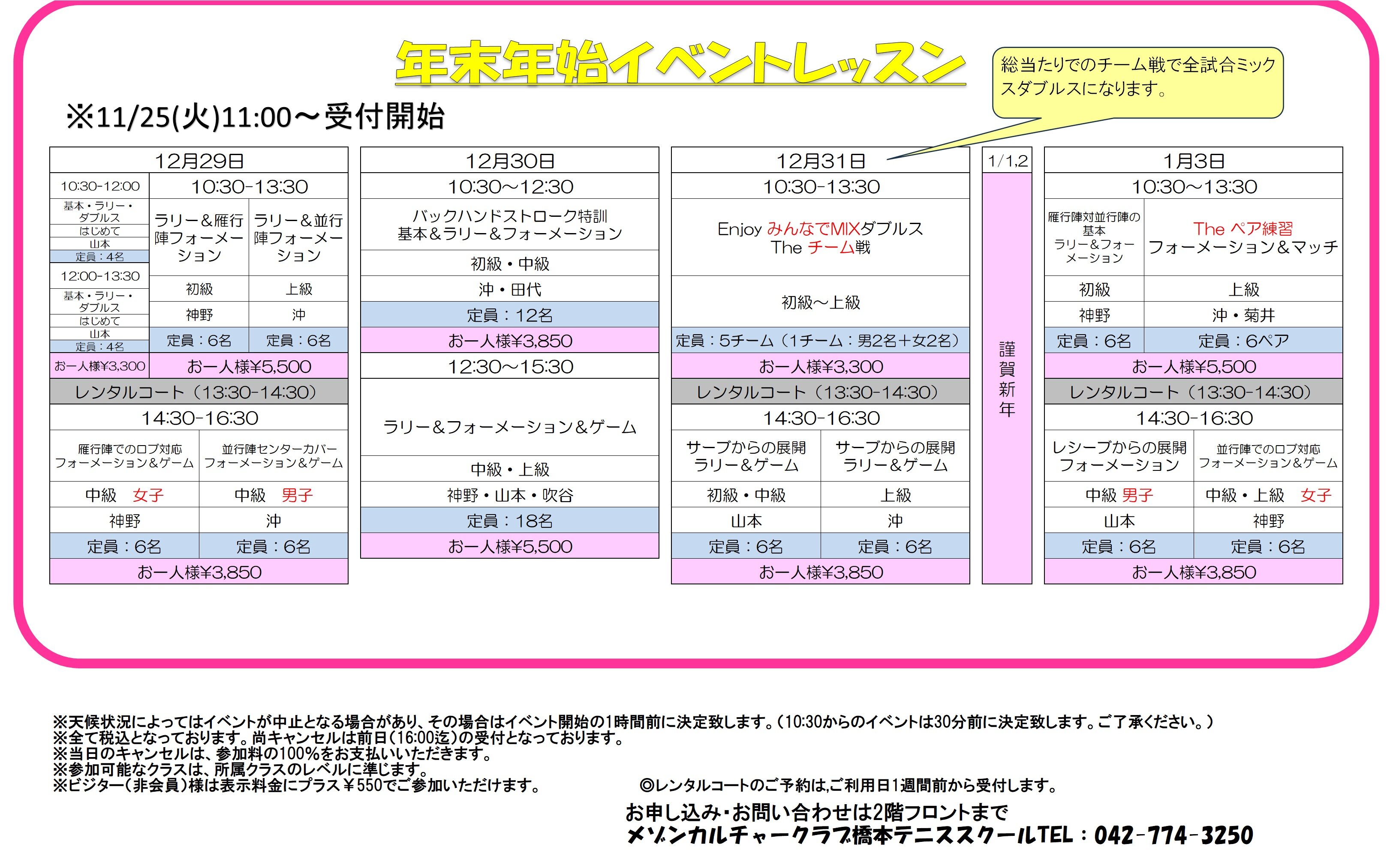 テニス2025年年末ー2026年年始テニスイベントレッスンのご案内