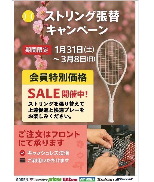 テニスストリング張替キャンペーン 1/31(土)~3/8(日)