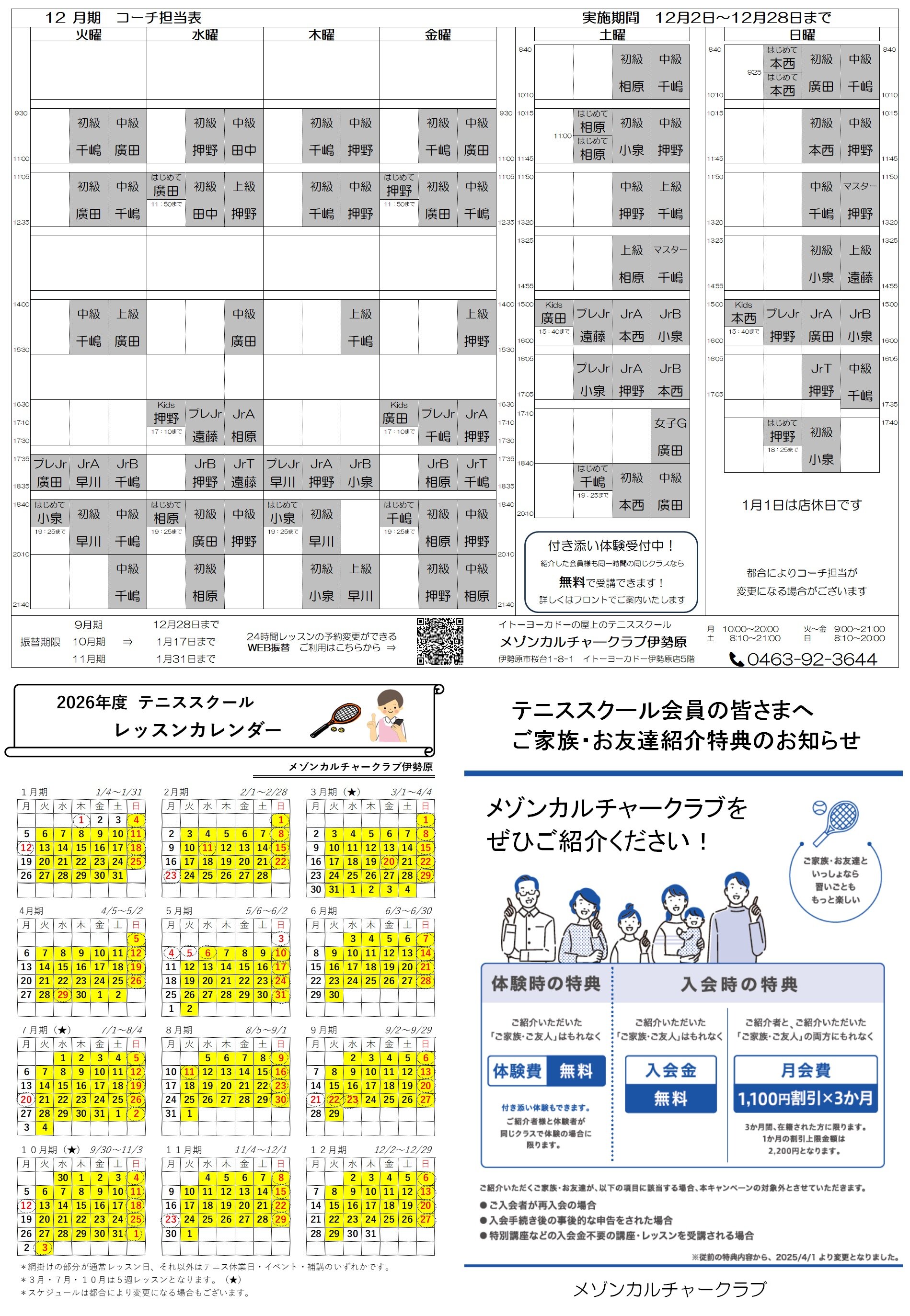 12月のコーチ担当表です。