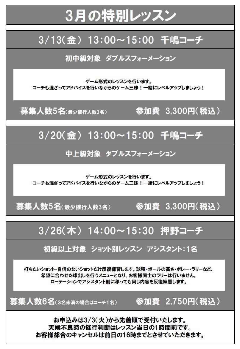 ※早川コーチは3/26(木)が最後のレッスン日になります。