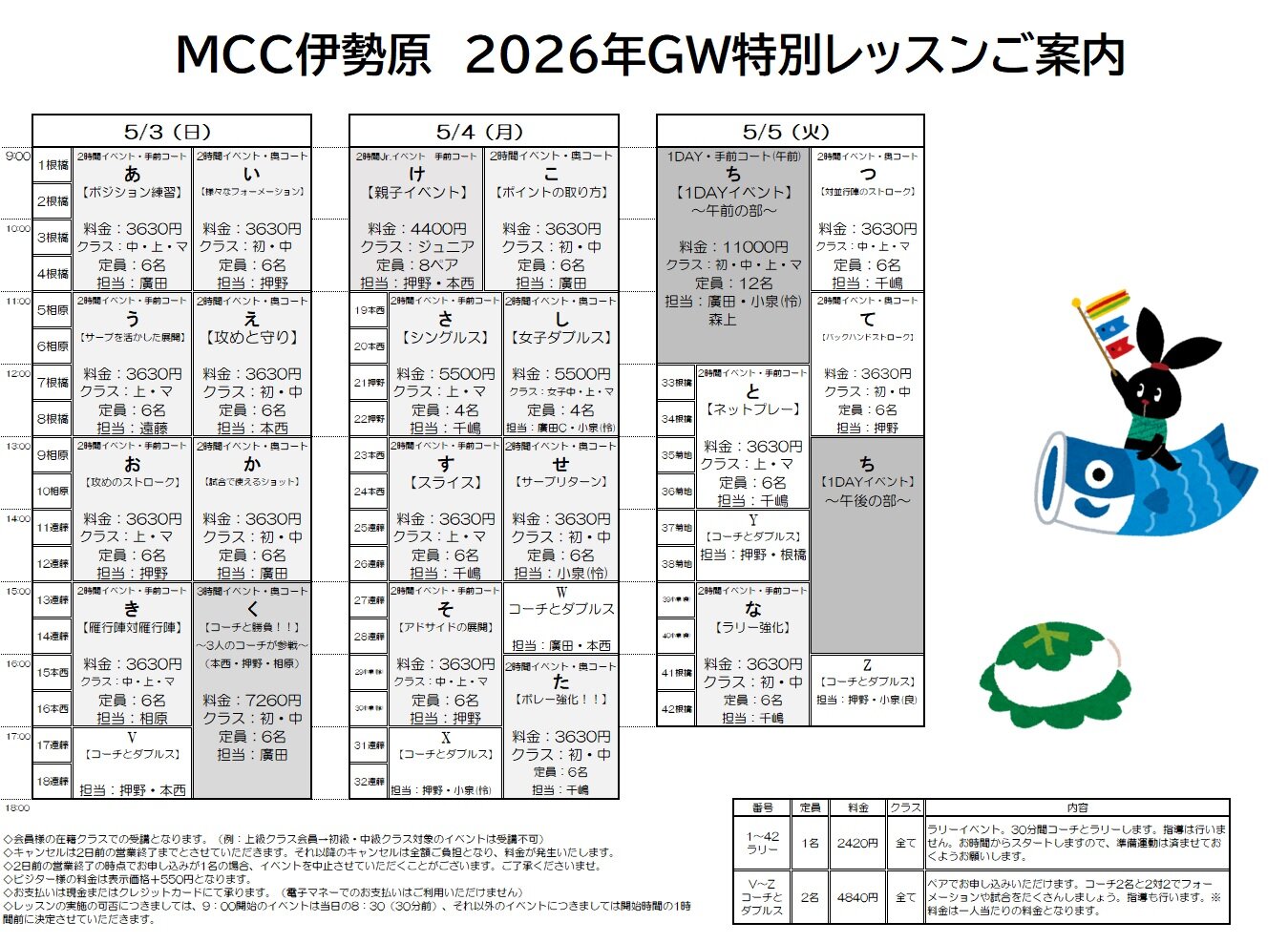ゴールデンウィーク特別レッスンと期間中の営業時間のお知らせ
