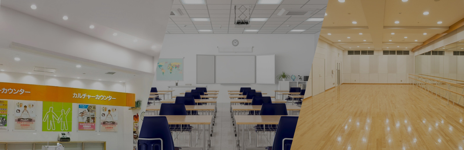 施設 | 文化教室(2室)、スポーツ教室(2室)、音楽教室(1室)、個人教室(3室) シャワールーム、更衣室完備 ロッカー使用料無料 |