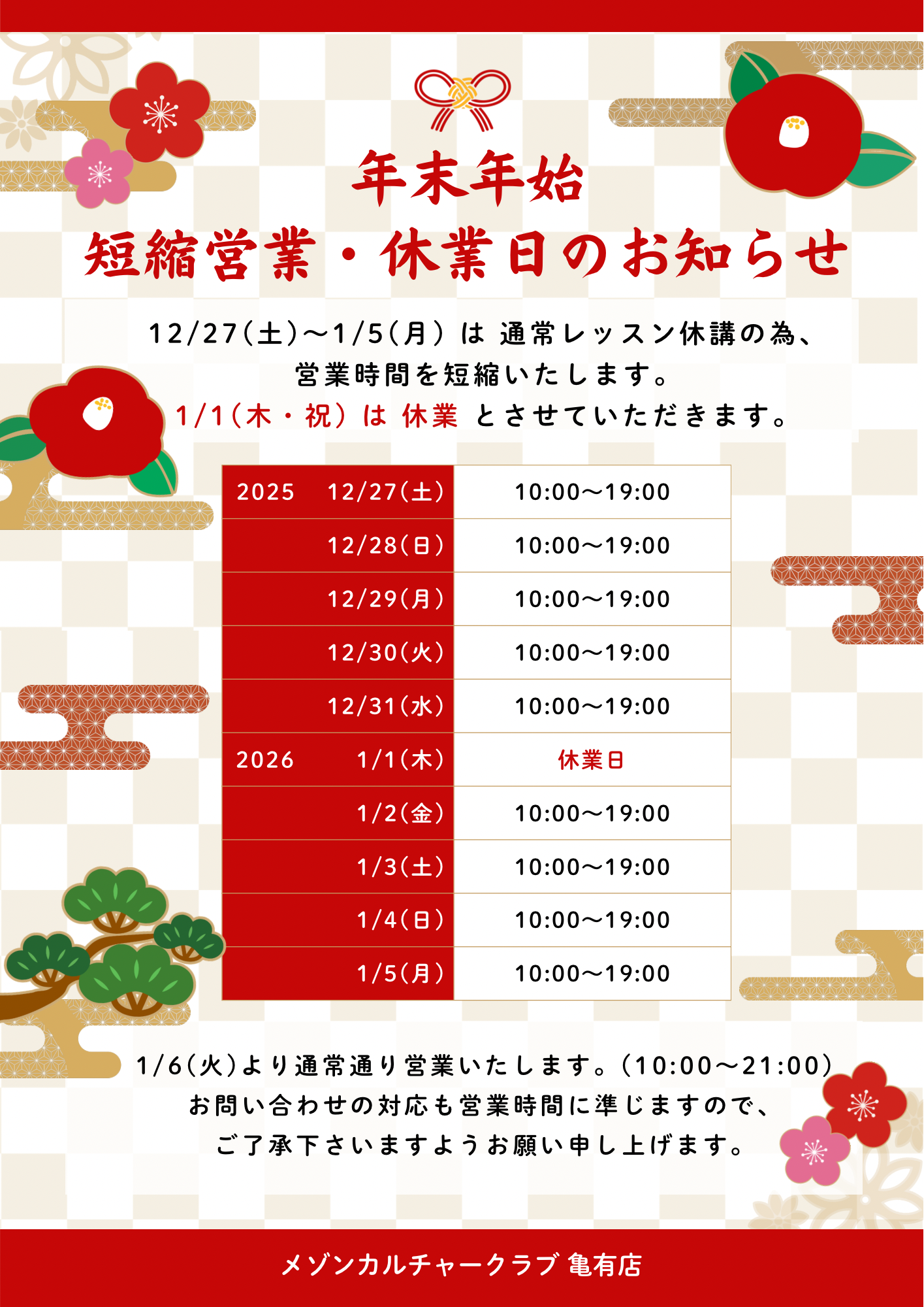 お知らせ2025年~2026年 短縮営業・休業日のお知らせ