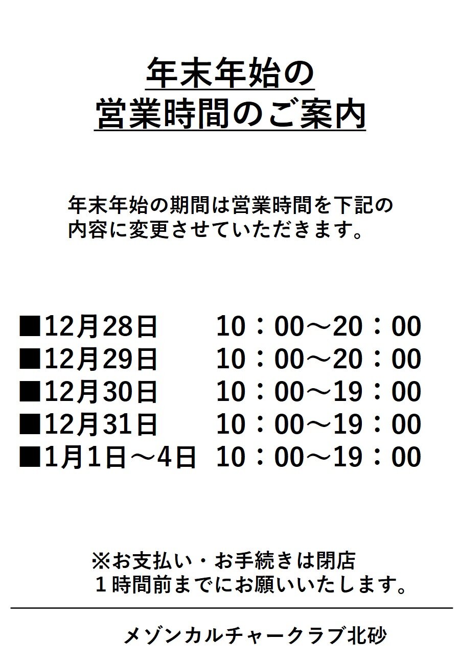 年末年始の営業について