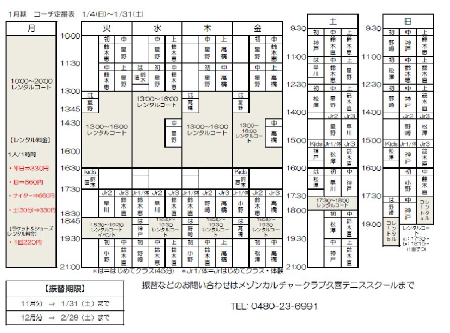 1月度コーチ担当表