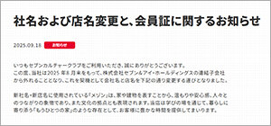 社名および店名変更と、会員証に関するお知らせ