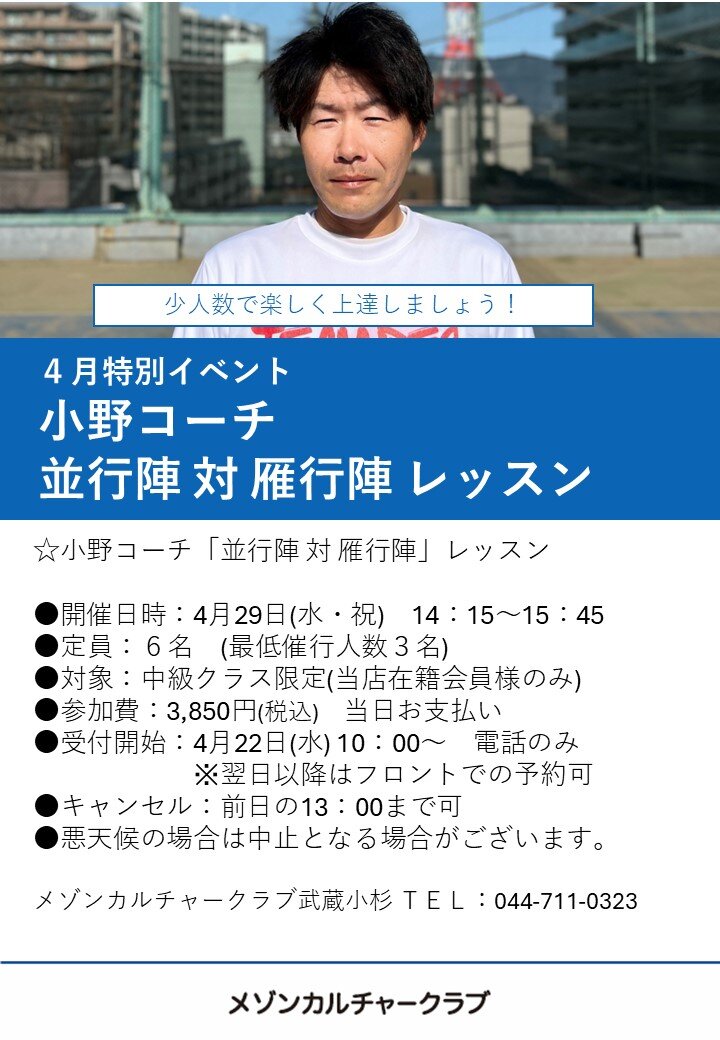 4/29(水・祝)開催 中級クラス対象 「並行陣 対 雁行陣」イベント