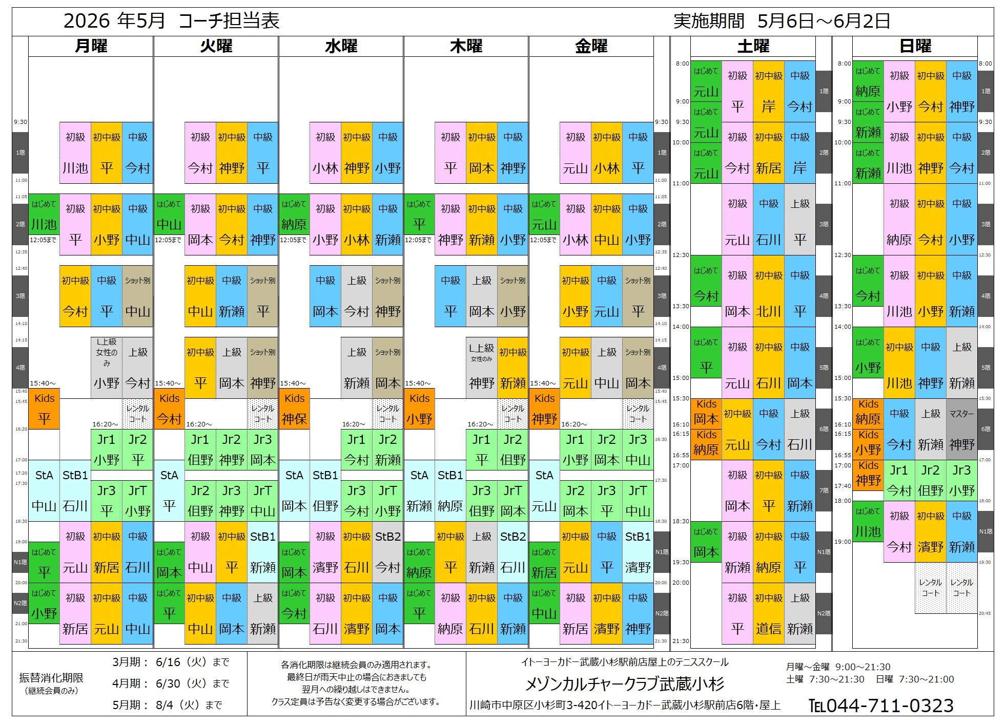 4月期(4/5~)よりテニスタイムテーブルを以下の内容に変更させていただきます。