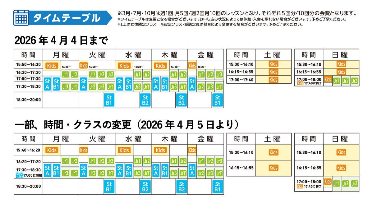 | クラス名 | 対象 | レッスン内容 |