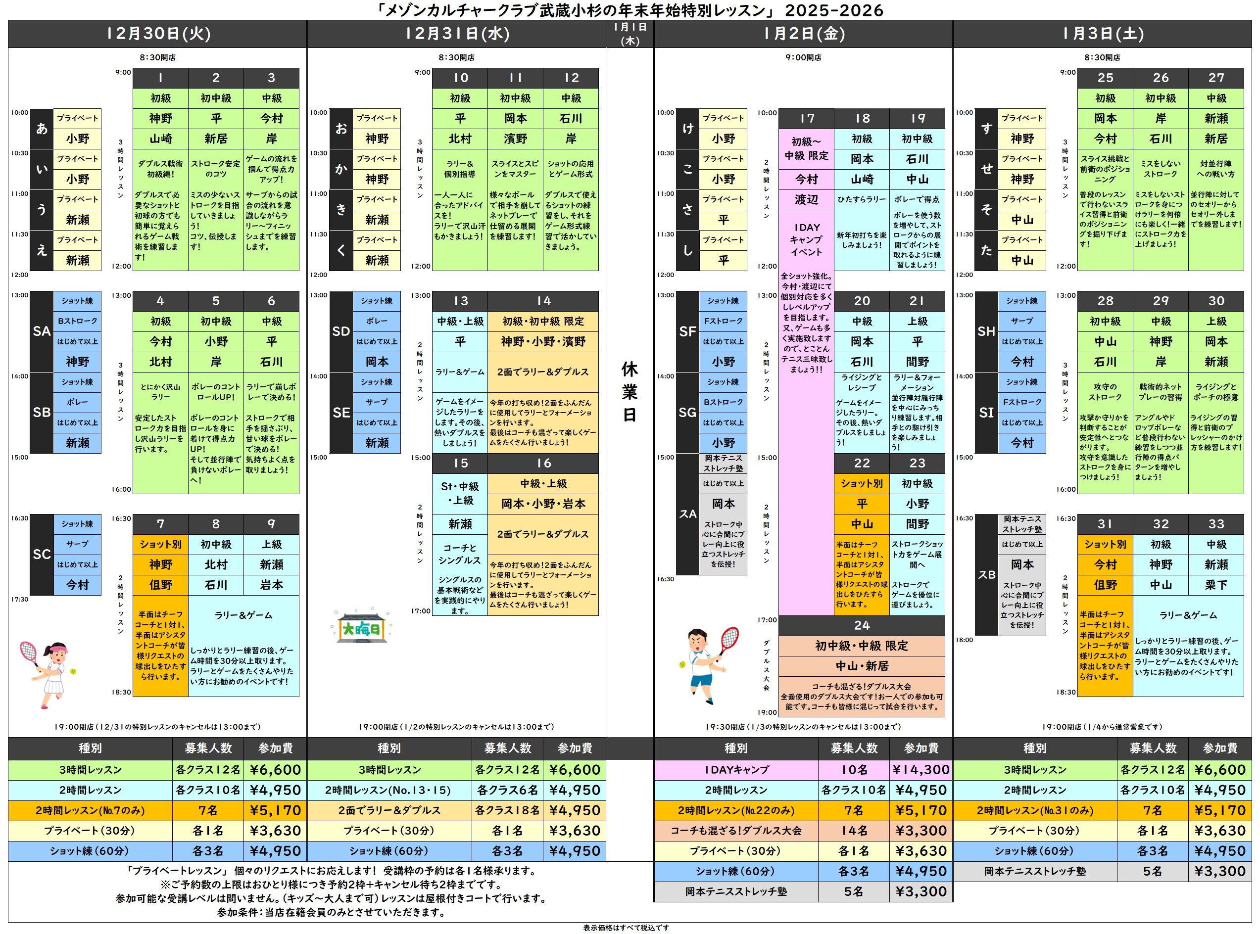 テニス2025-2026 年末年始特別レッスン実施のお知らせ