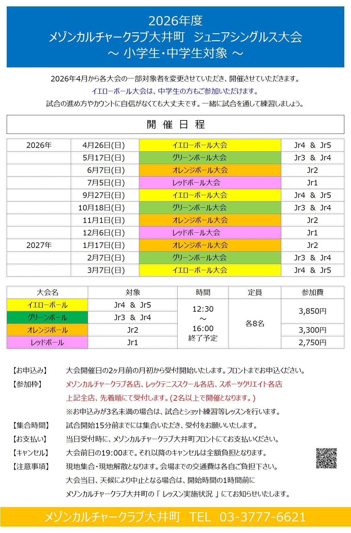 大井町校 小学生・中学生 試合イベントのご案内
