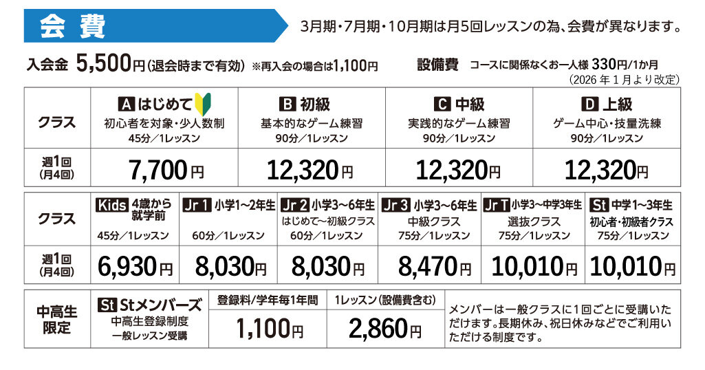 1期全4回なので、テニスが初めての方でも無理なくご参加いただけます。