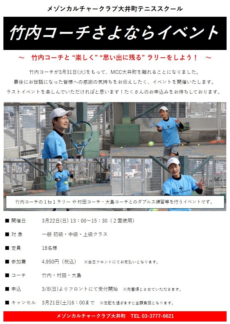 竹内HC さよならイベント開催のお知らせ