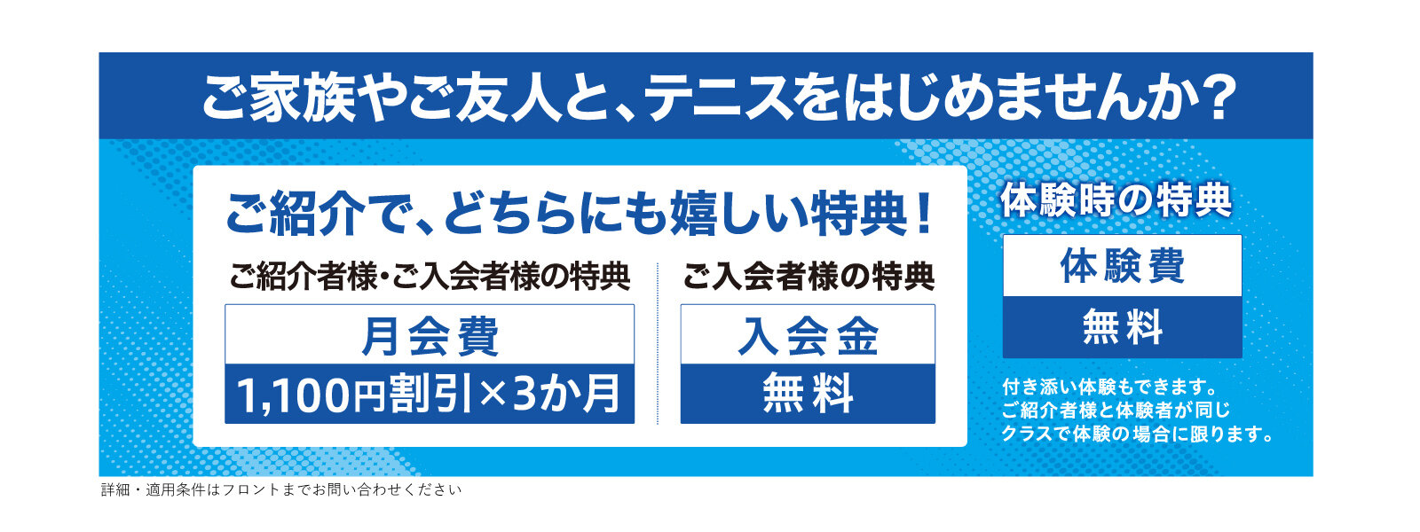 春には合同のテニス大会、夏には地域ごとの大会が開催されます。また、各店舗単位でも大会などのイベントが開催され、たくさんの成長を実感できる機会がございます。