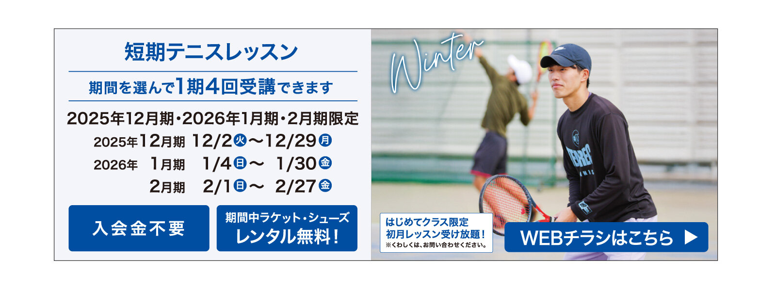 | 参加費 | 受講当日にテニススクールフロントでお支払い下さい。 (現金もしくはクレジットカード・電子マネー) |
