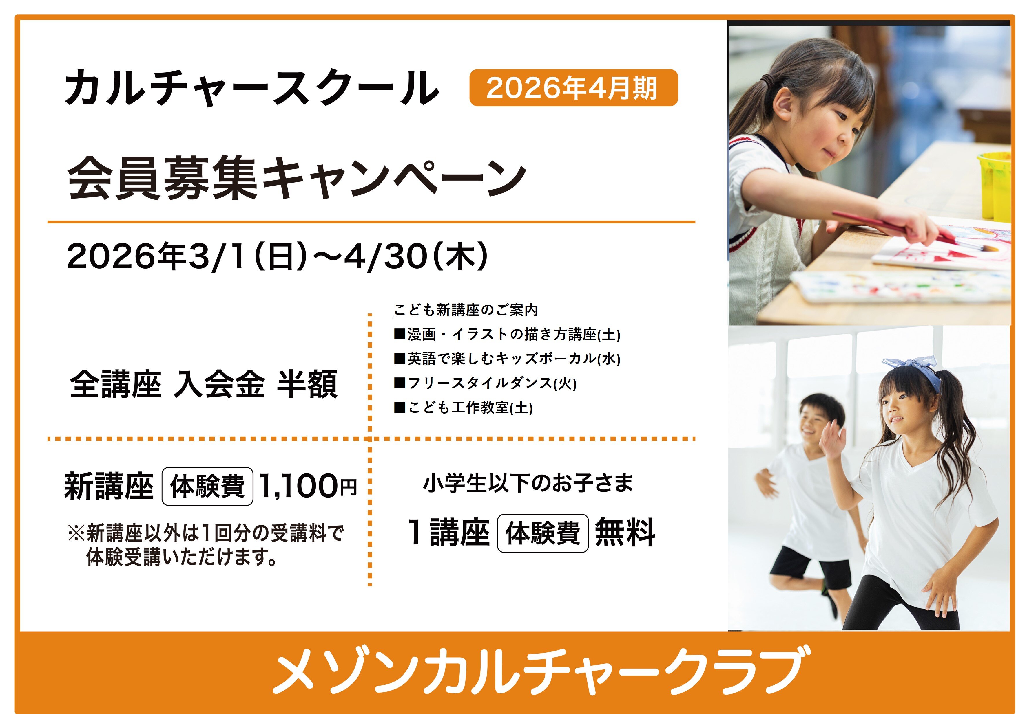 カルチャー2026年4月期:春号 こども体験費無料特典のご案内