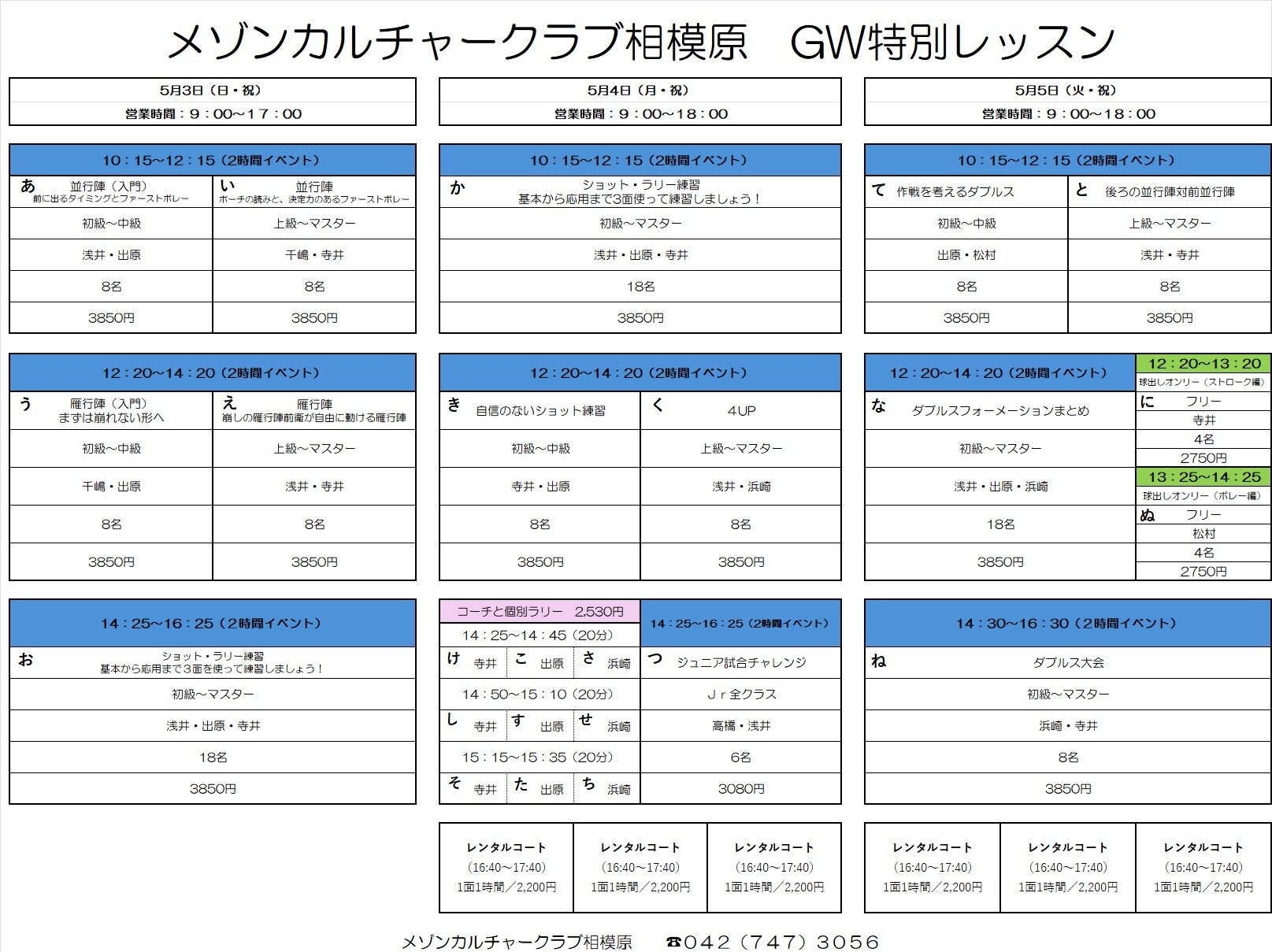 2026GW特別レッスンのご案内 ※受付開始は、3月28日(土)午前10時から