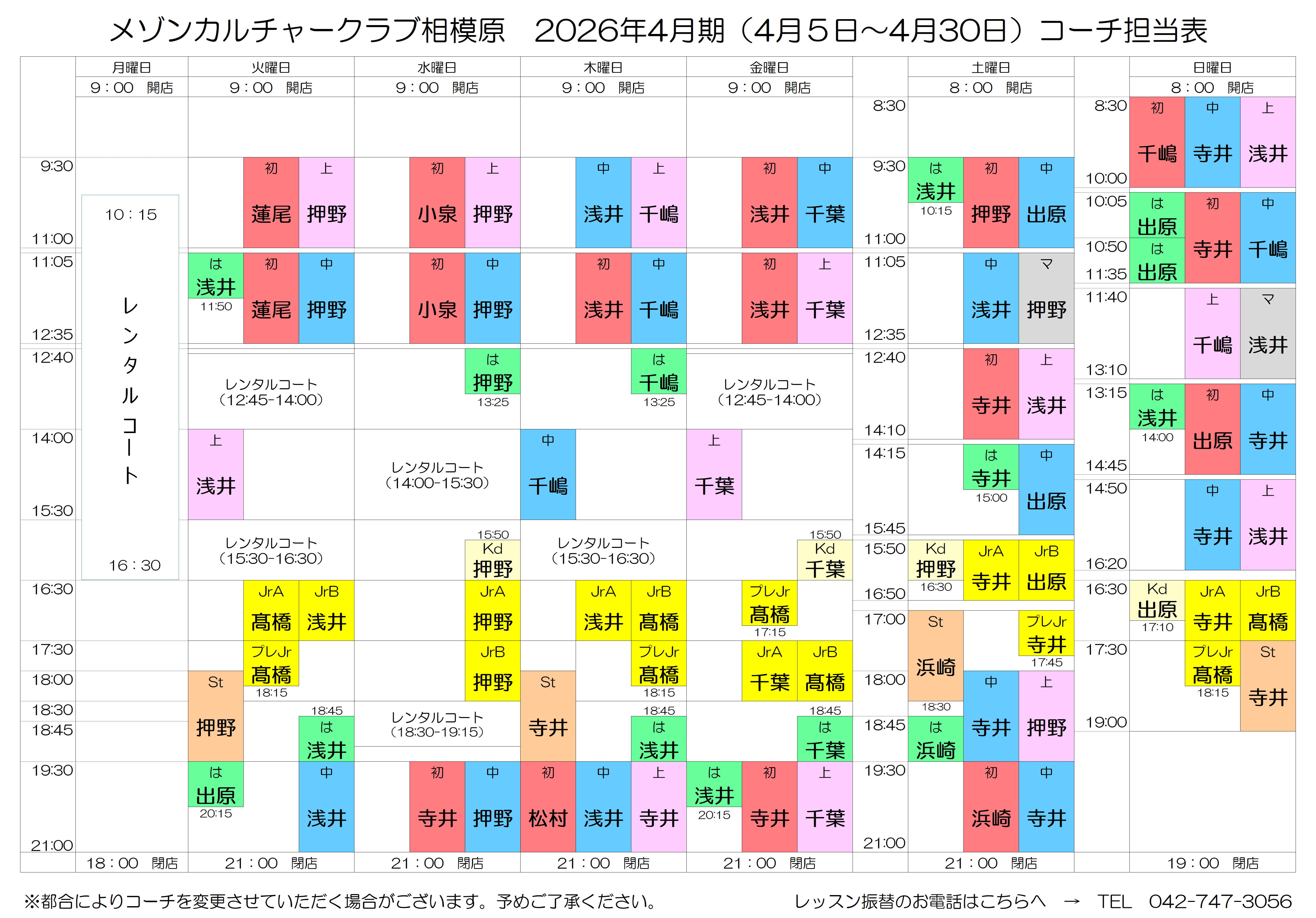 2026年4月期 コーチ担当表