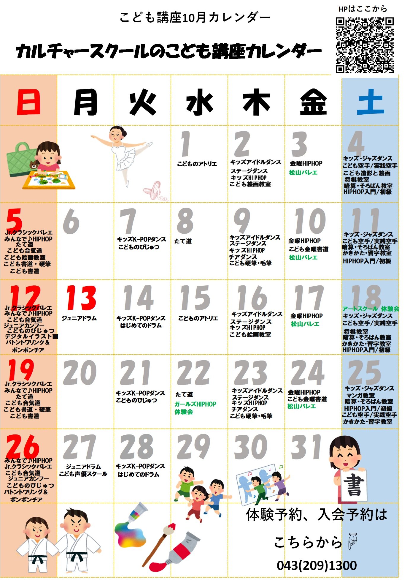 ★10月こども講座カレンダー★