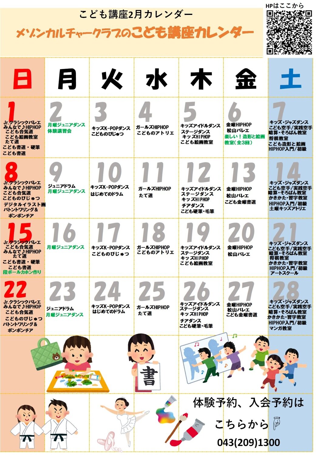 2026年2月のこども講座カレンダーを公開しました☀体験ご予約お待ちしております!