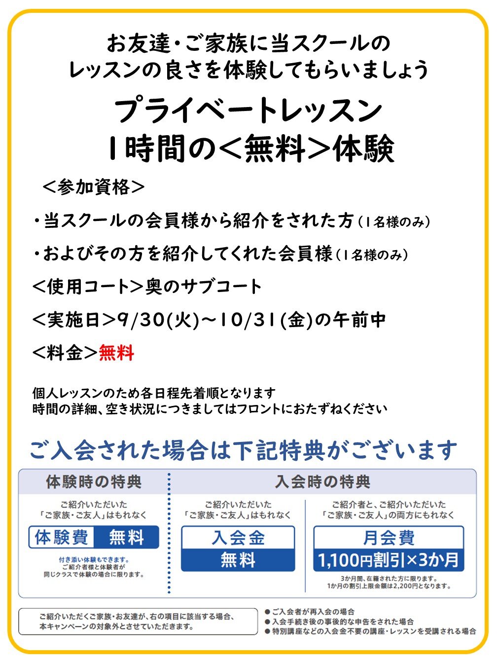 当店をまだご利用になったことないお知り合いの方をご紹介いただいた場合、左記の<無料>プライベートレッスンを受講していただくことができます。