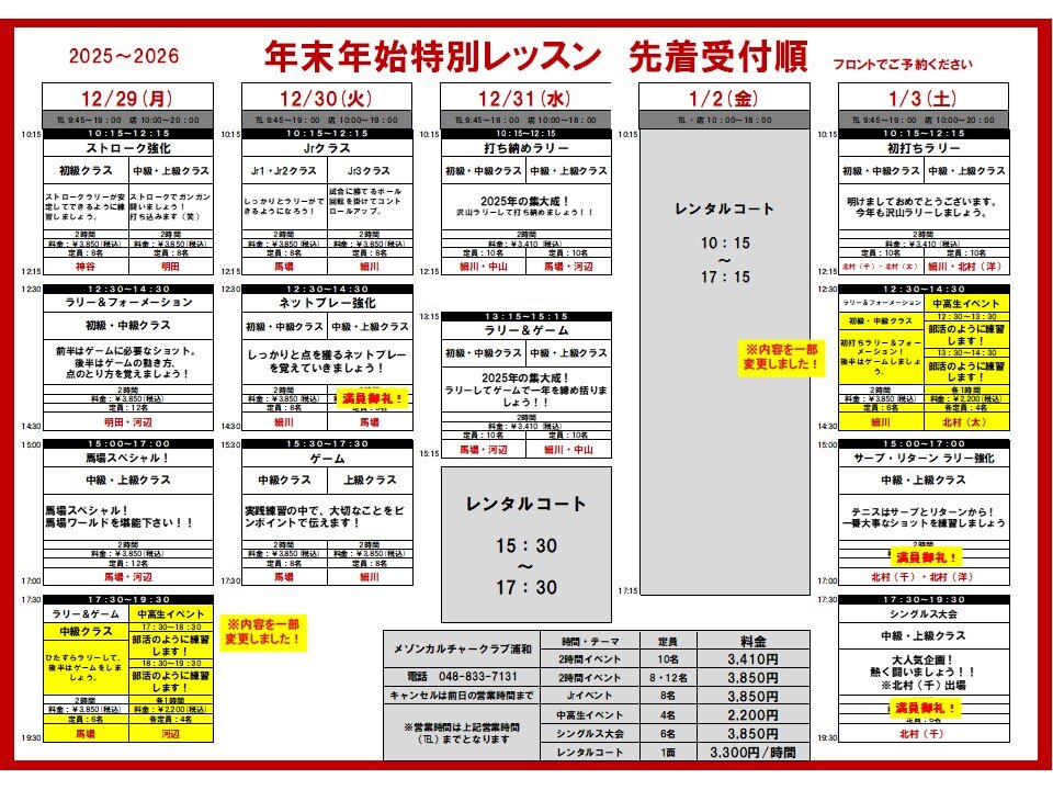 ’25-’26年末年始 特別レッスンのご案内<中高生向けメニュー追加>
