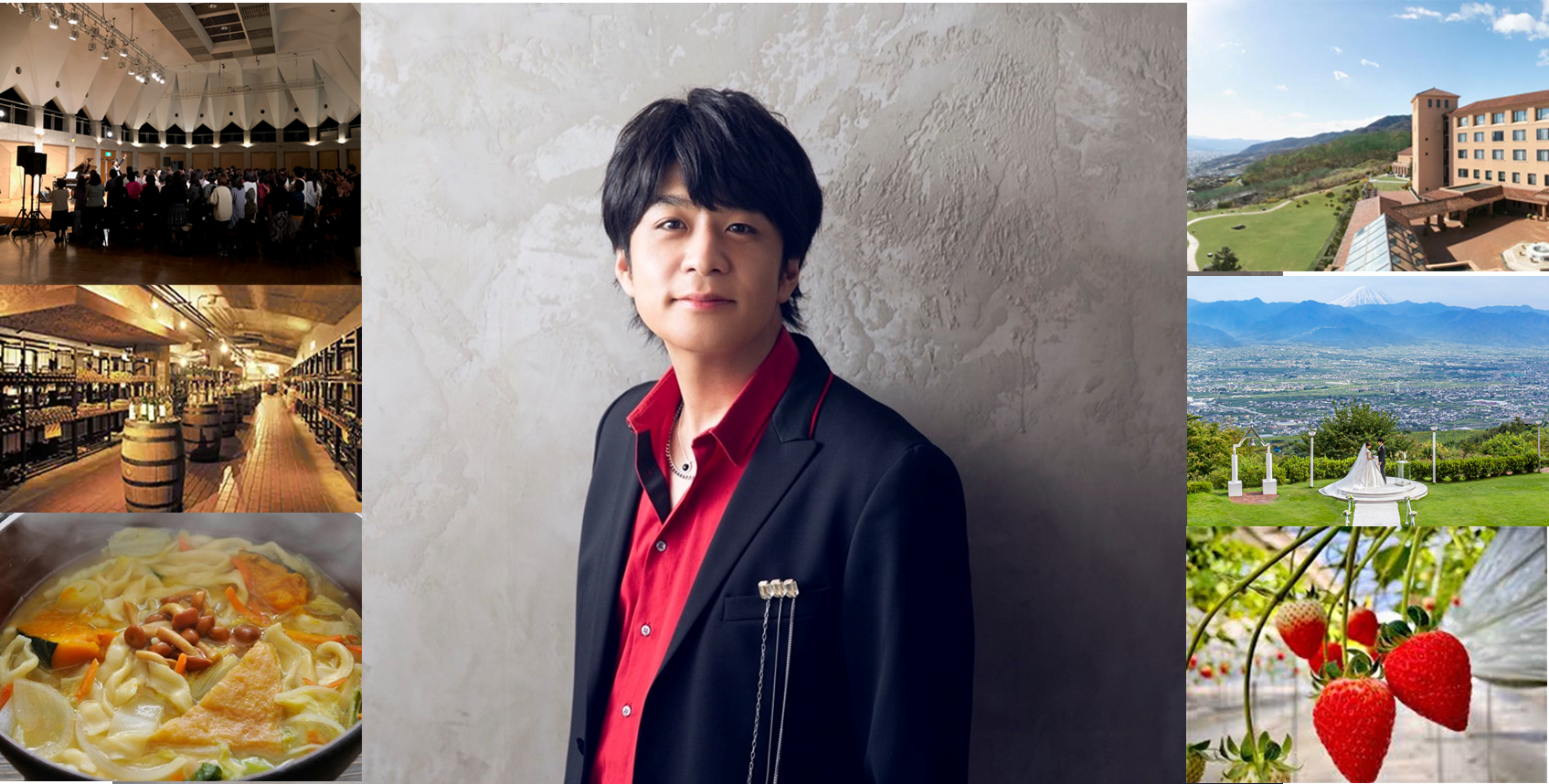 勝沼の美しい景色に包まれながら、心に響くスペシャルコンサート、香り豊かなワイン、甘いいちご、そしてここでしか味わえない交流のひととき。そして、バレンタインデーに藤澤ノリマサさんが貴方のお部屋訪問をし、2ショット撮影を行います。