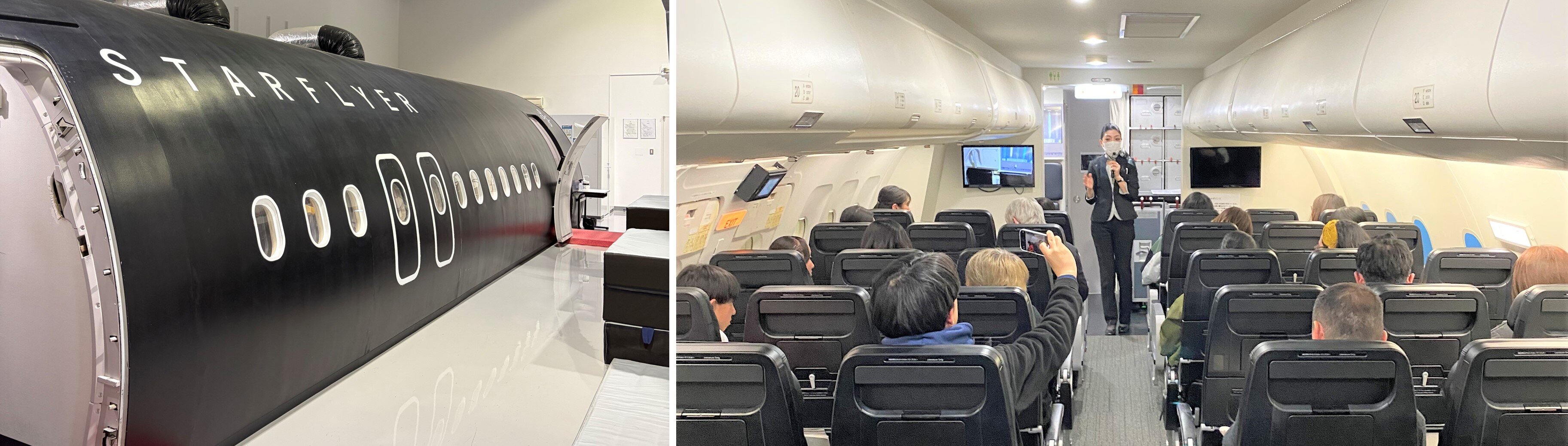 羽田空港(9:15発) ✈ スターフライヤー75便 ✈ 北九州空港(11:10着) 着後、空港内レストランで 名物‧焼カレーの 昼食 🚌 スターフライヤ ートレーニングセンター(約60分/CA講話、モックアップ見学) 👣 スターフライヤー格納庫見学(約60分/整備士による説明およびマーシャラー体験 ※格納庫内に飛行機は駐機しておりません) 🚌 空港内立入禁止エリア(約30分/スポットに到着する飛行 機の様子を見学) 北九州空港(16:30発) ✈ スターフライヤー86便 ✈ 羽田空港(18:00予定)